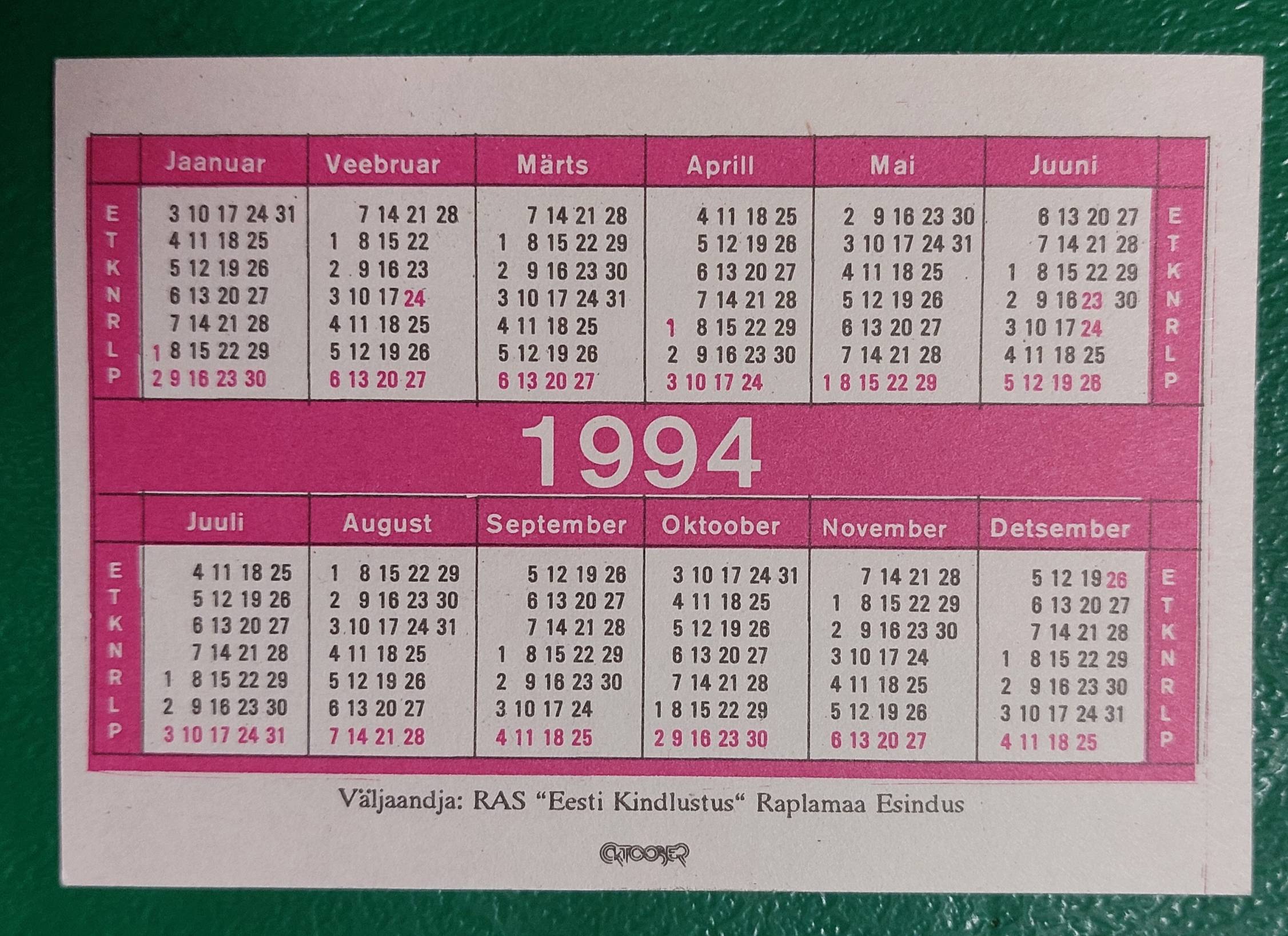 Kalendoriukas 1994 automobilis
