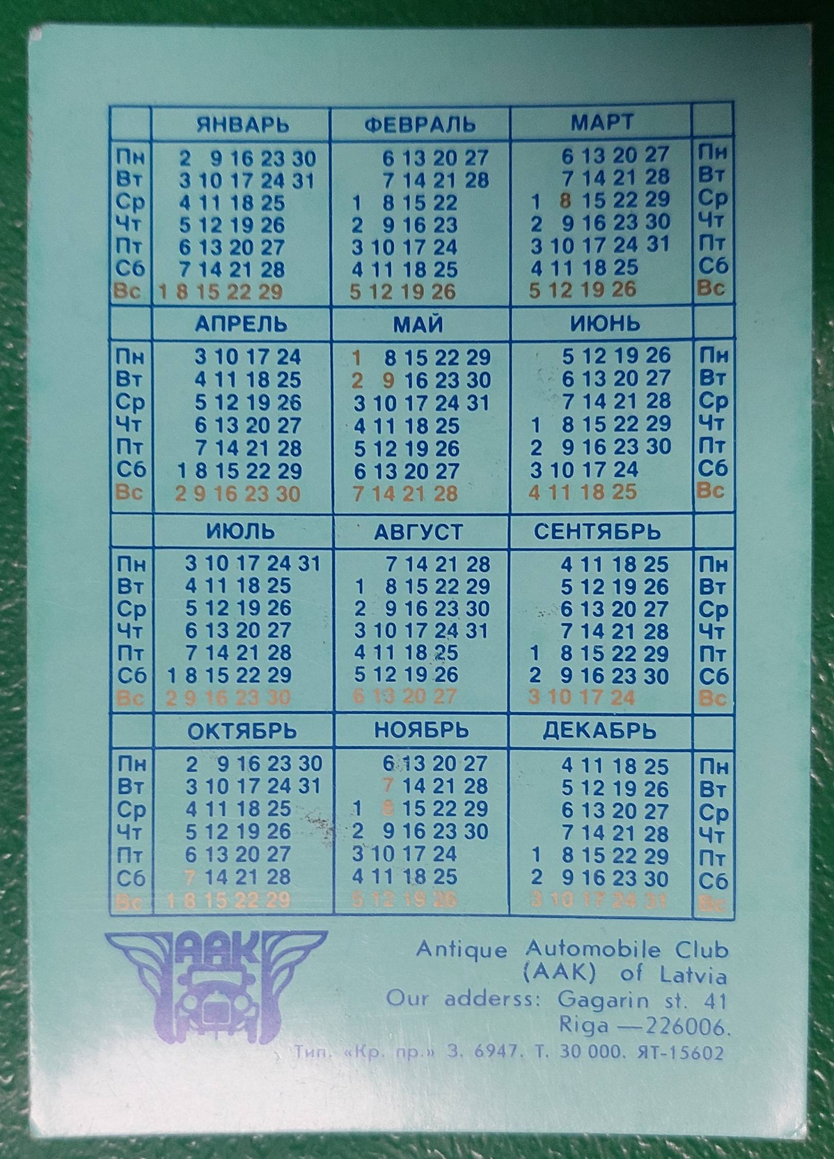 Kalendoriukas 1989 motociklas