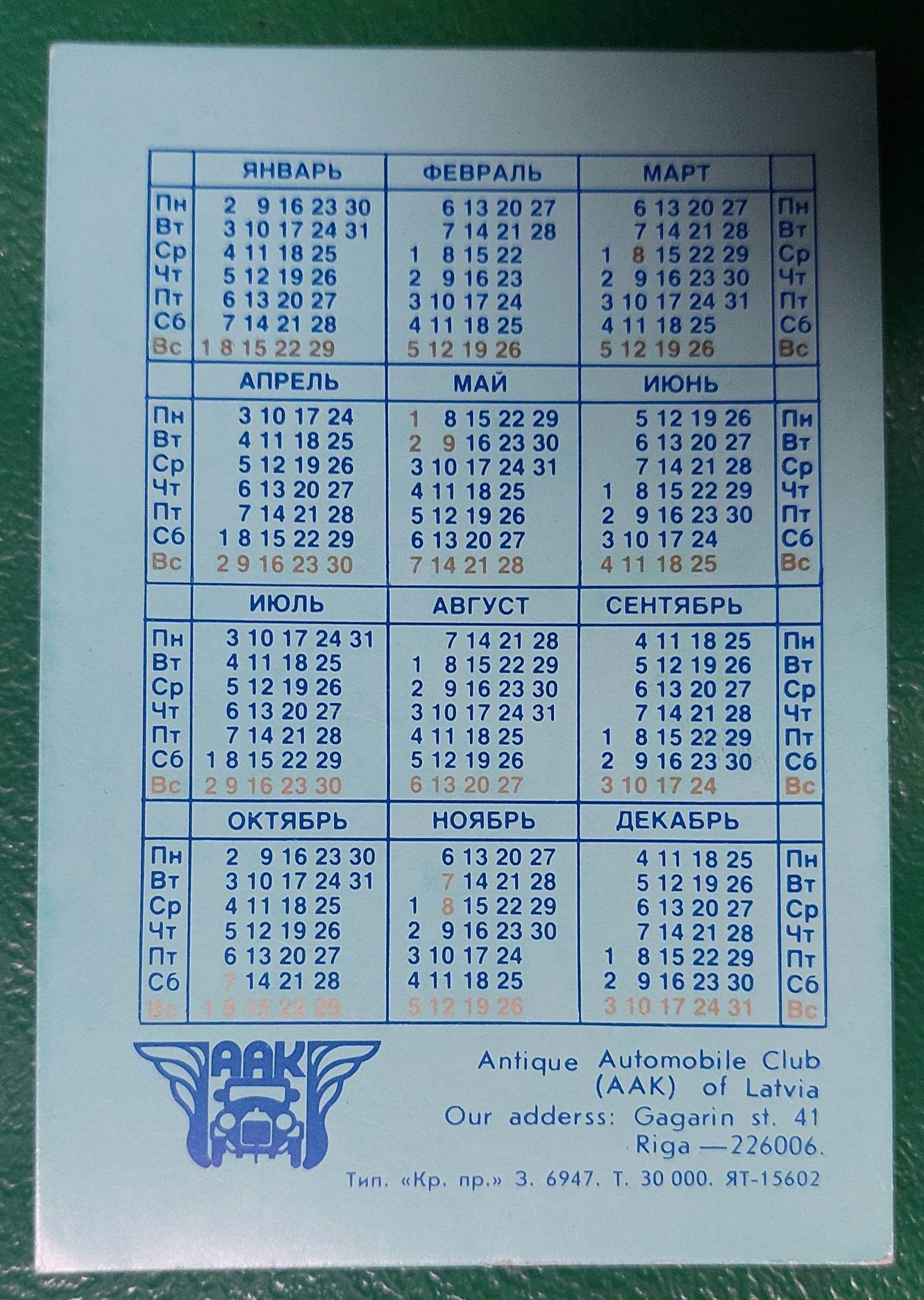 Kalendoriukas 1989 motociklas