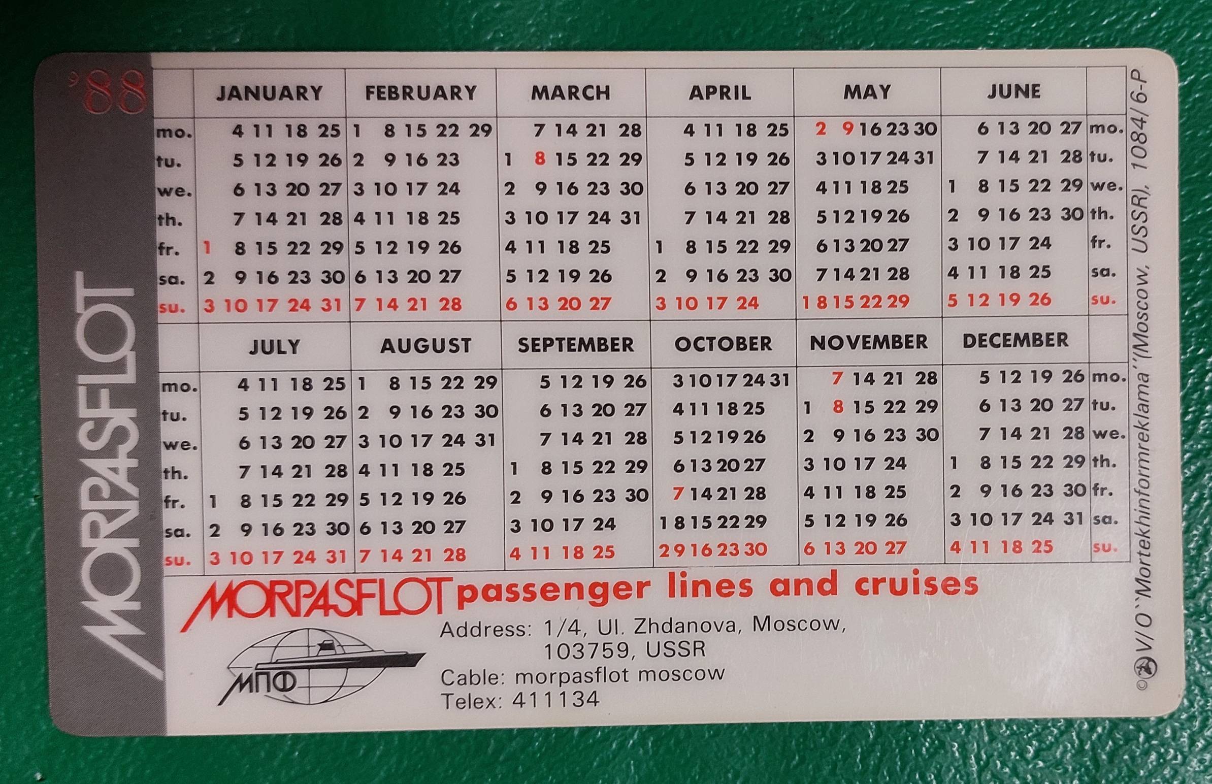 Kalendoriukas 1988 laivas