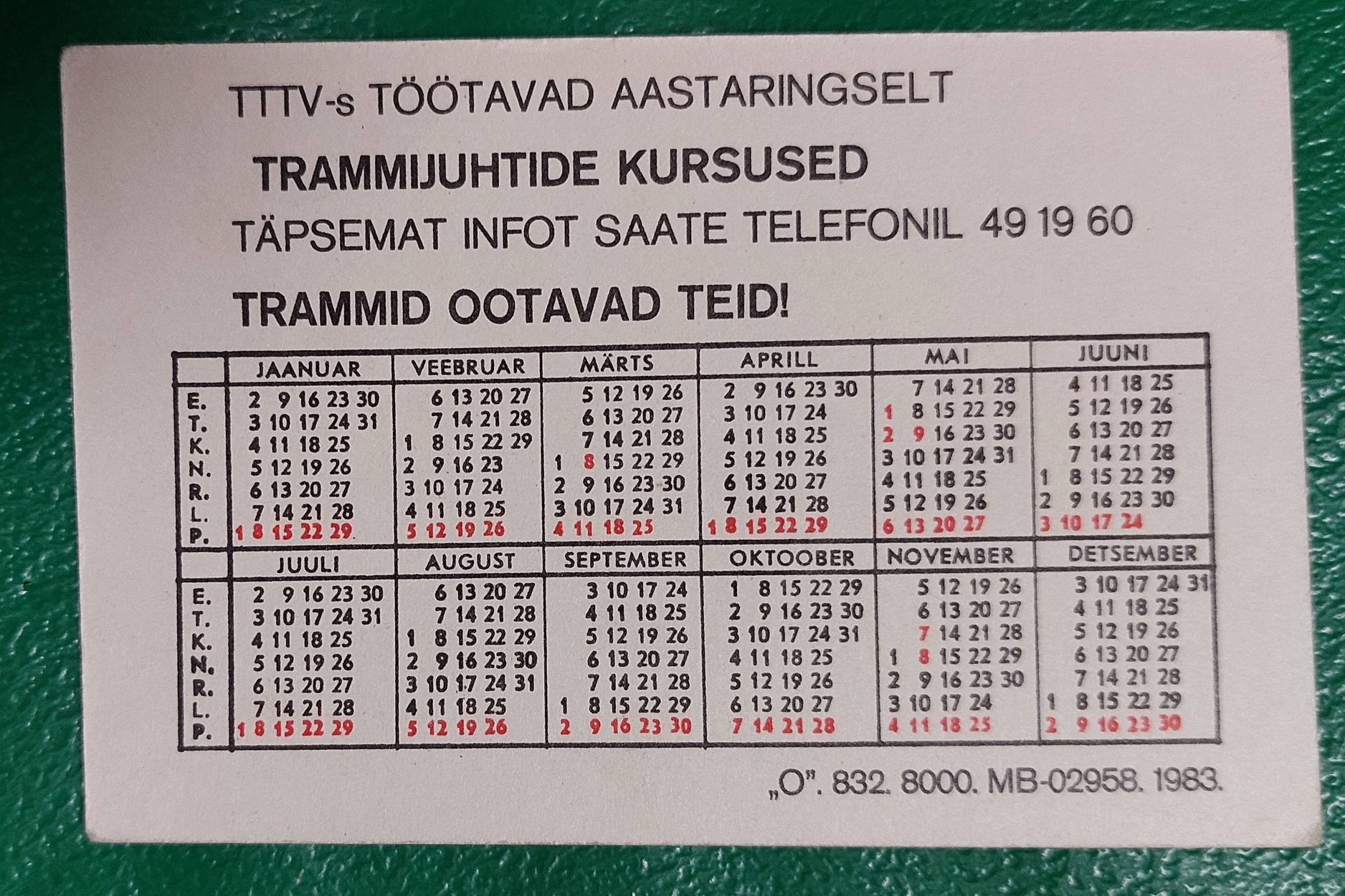 Kalendoriukas 1983 tramvajai