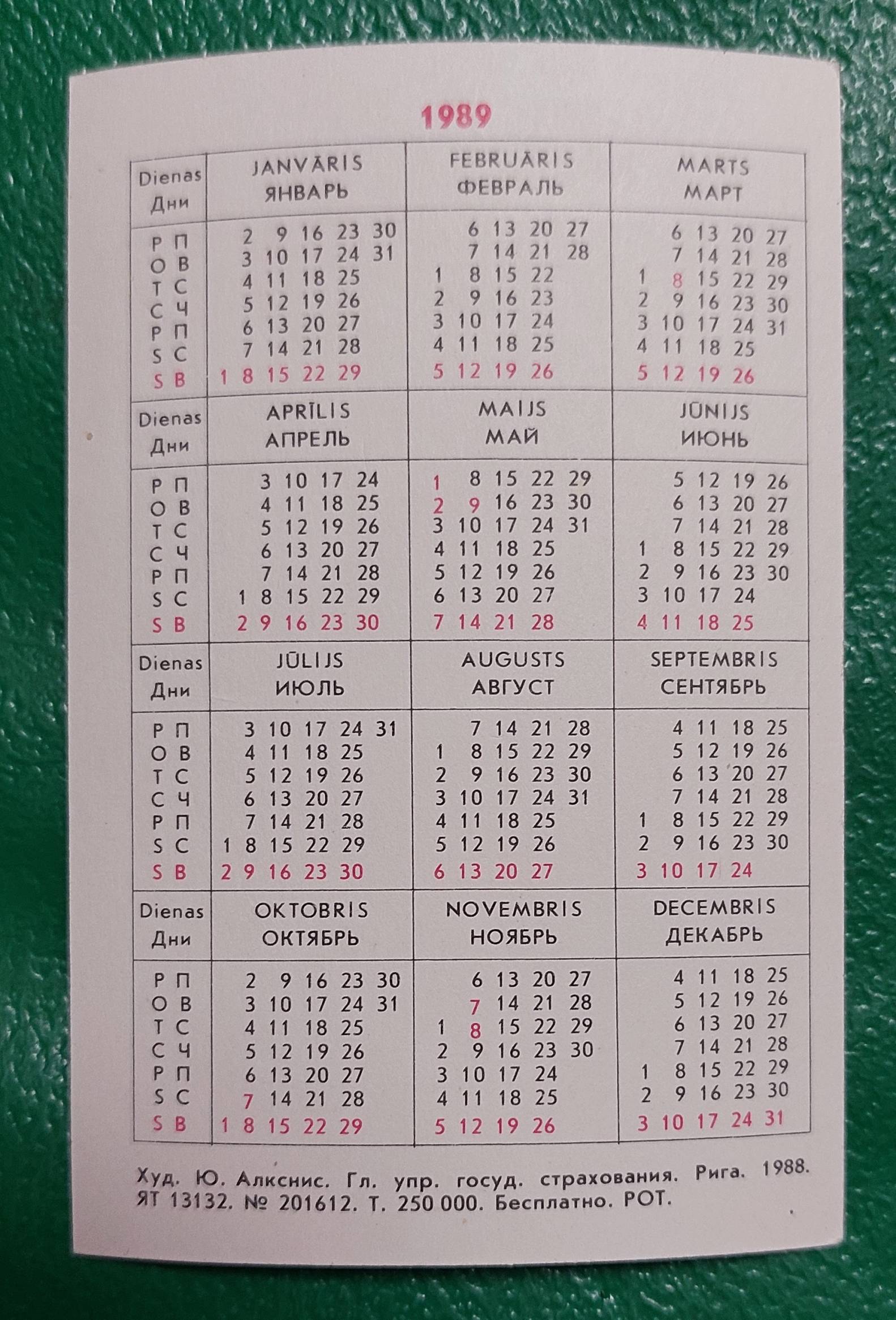Kalendoriukas 1989 laivas