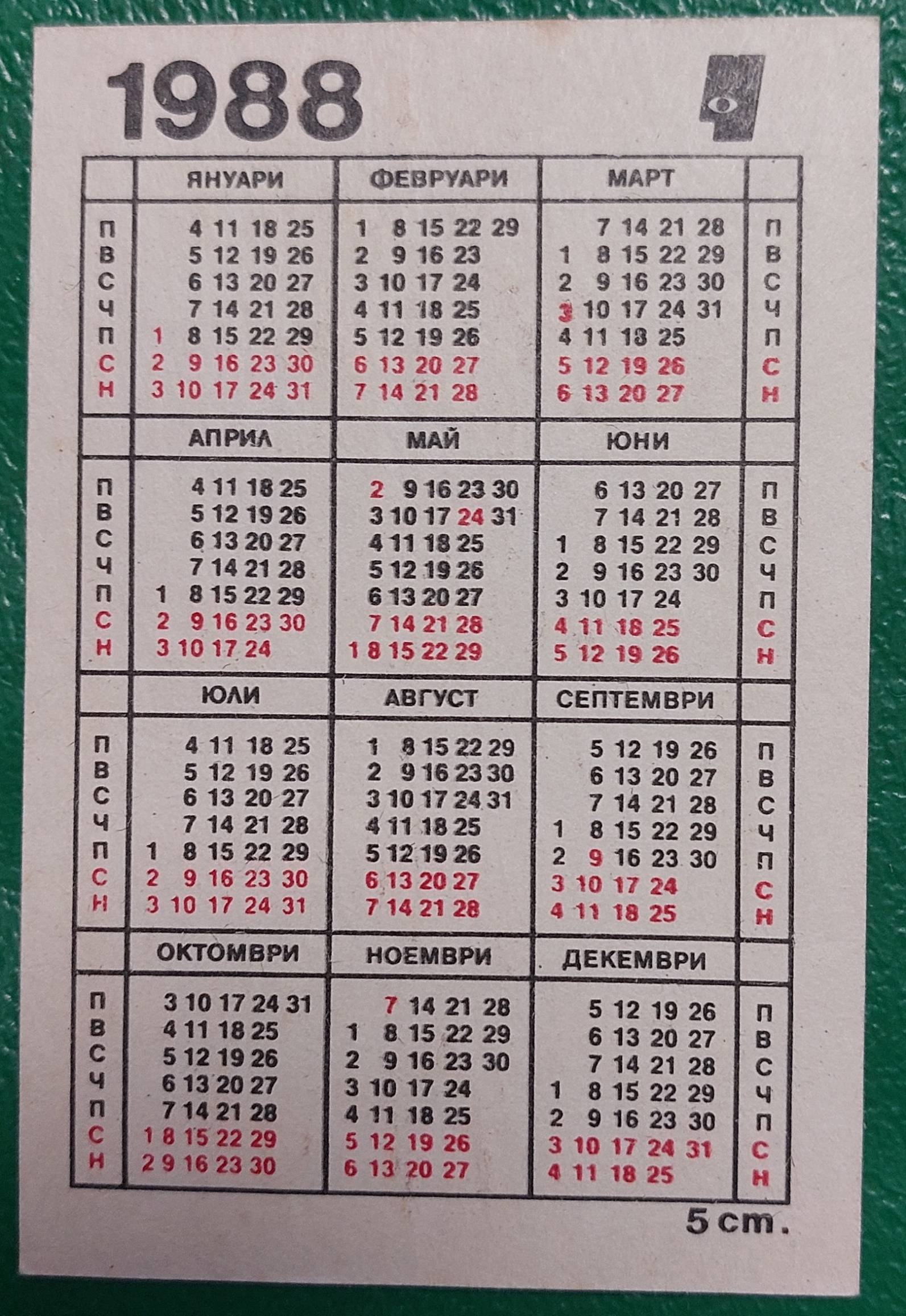 Kalendoriukas 1988 kareivis