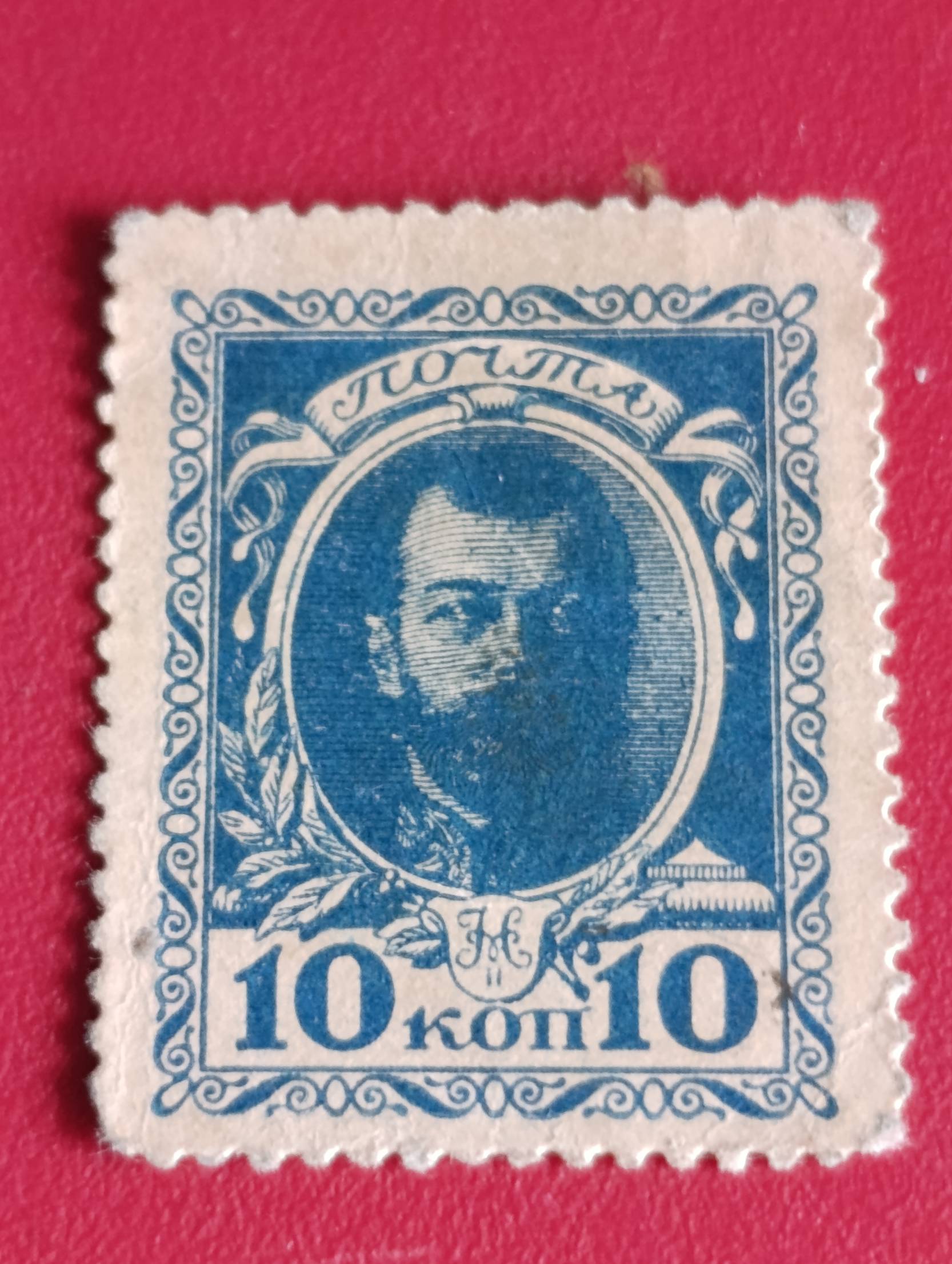 Rusijos imperijos 10 kapeikų ženklas su caru Nikolajumi II(standartinė emisija ~1909–1917 m.)