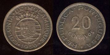 Mozambikas 20 sentavų 1950 m., KM#75, Unc-