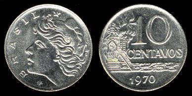 Brazilija 10 sentavų 1967 m., KM#578.1, XF