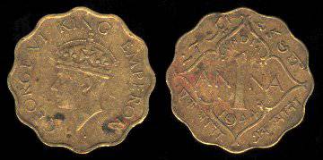 Indija 1 ana 1944 m. (b), KM#537a, VF+