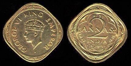 Indija 2 anos 1942 m. (b), KM#541a, VF-