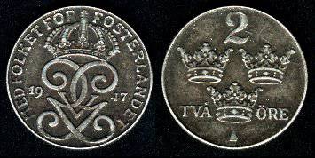 Švedija 2 erės 1949 m., KM#811, VF