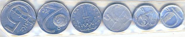 Čekija,6 apyvart.monetų komplektas,1993-2000