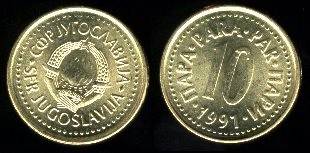Jugoslavija 10 parų 1990 m., KM#139, Unc-