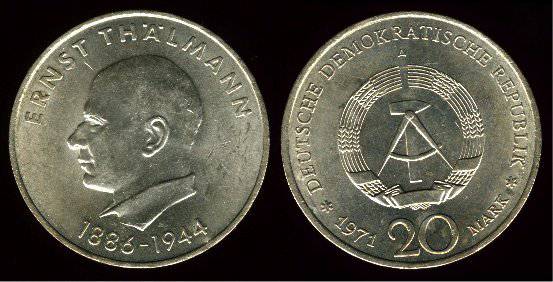 Vokietijos DR 20 markių 1971 m.,Telmanas,KM#34,XF