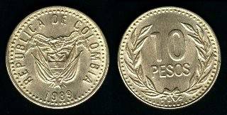 Kolumbija 10 pesų 1989 m., KM#281.1, Unc