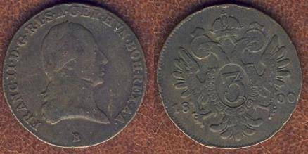Austrija,Franz II, 3 kreiceriai,1800B,KM#2115.3, F