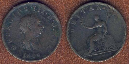 Didžioji Britanija ½ penso 1806 m., KM#662, F-