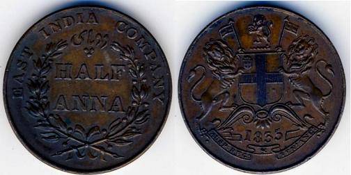 Indija ½ anos 1835 (b), KM#447.1, XF