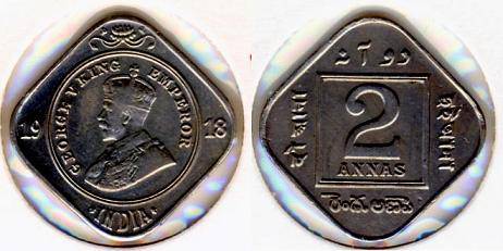 Indija 2 anos 1918 m. (c), KM#516, XF-