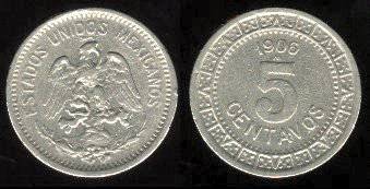Meksika 5 sentavai 1914 m., KM#421, F