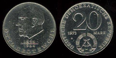 Vokietijos DR 20 markių 1973,Grotevolis,KM#47,XF