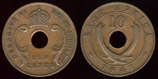 Rytų Afrika 10 centų 1937 m. KN, KM#26.1, VF