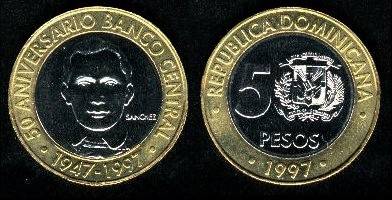 Dominikos Respublika 5 pesai 1997 m., KM#88, Unc-