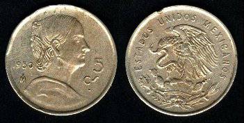 Meksika 5 sentavai 1950 m., KM#425, VF+