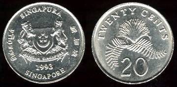 Singapūras 20 centų 1993m., KM#101, Unc