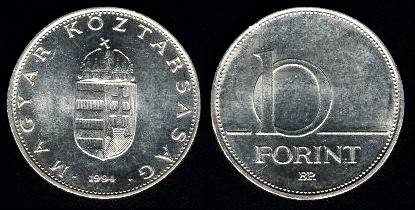 Vengrija 10 forintų 1993 m., KM#695, VF