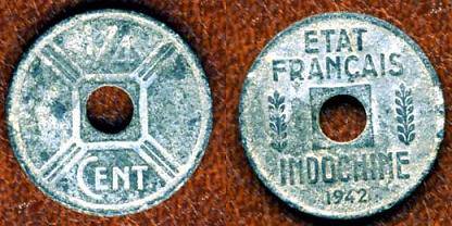 Prancūzų Indokinija ¼ cento 1942 m., KM#25,F- (3)