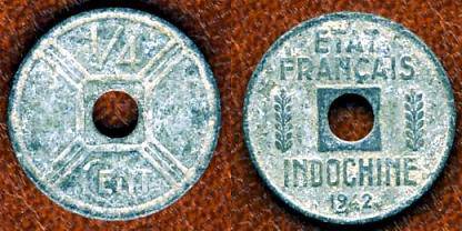 Prancūzų Indokinija ¼ cento 1942 m., KM#25,F- (5)