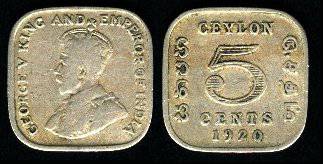 Ceilonas 5 centai 1920 m., KM#108, F+