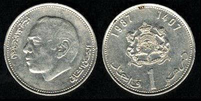 Marokas 1 dirhamas 1974 m., KM#88, VF+