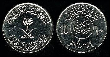 Saudo Arabija 10 halalų 1987 m., KM#62, XF-
