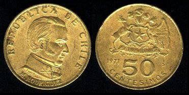 Čilė 50 sentesimų 1971 m., KM#196, Unc-
