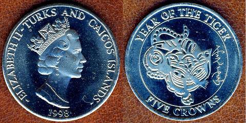 Turks & Caicos 5 kronos 1998 m., KM#232, Unc-