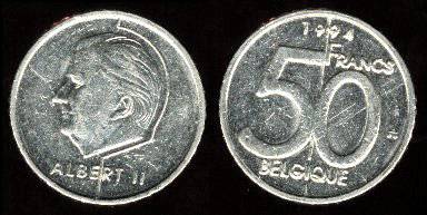 Belgija 50 frankų 1994 m., KM#193, VF+