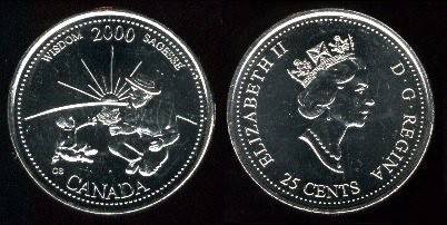 Kanada 25 centai 2000 m.Wisdom, KM#378, XF