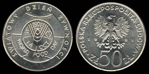 Lenkija 50 zlotų 1981 m., FAO, KM Y#127, VF+