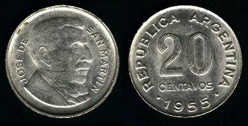 Argentina 20 sentavų 1956 m., KM#52, VF