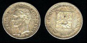 Venesuela 25 sentimai 1960 m., KM#35a, Ag, XF-
