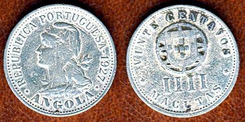 Angola 20 sentavų 1927 m., KM#68, F