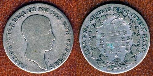 Vokietija/Prūsija 1/6 talerio 1814 A,KM#385,Ag,F-