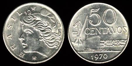 Brazilija 50 sentavų 1970 m., KM#580a, VF
