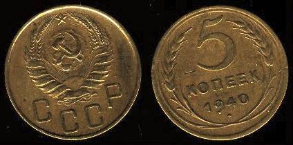SSRS 5 kapeikos 1940 m., KM Y#108, Unc-