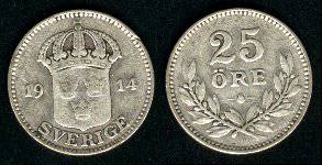 Švedija 25 erės 1919 m., KM#785, Ag, VF-