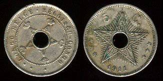 Belgų Kongas 5 santimai 1919 m., KM#17, F