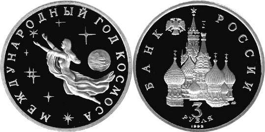 Rusija 3 rubliai 1992 m.,kosmosas,KM Y#297,BU-