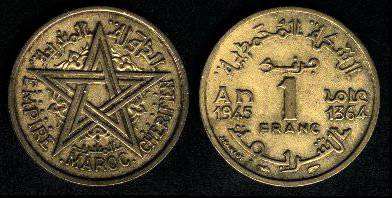 Marokas 1 frankas 1945 m., KM#41, VF