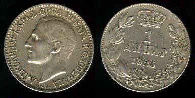 Jugoslavija 1 dinaras 1925 m., KM#5, VF