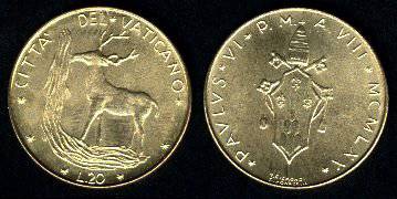 Vatikanas 20 lirų 1975 m., KM#120, Unc-